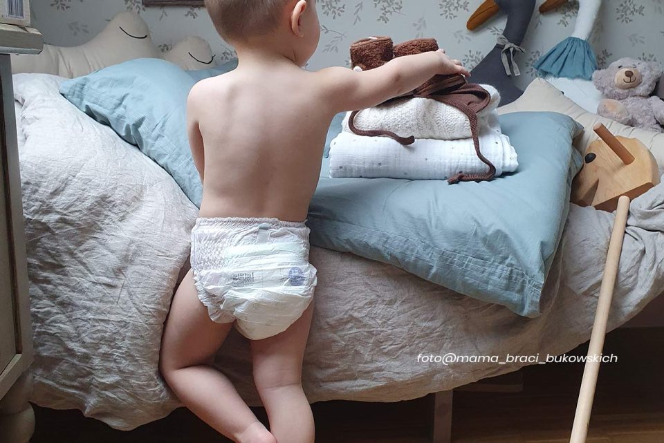 - Kalhotkové pleny lze použít, když dítě roste a začíná se pohybovat. Když už dítě není na zádech šťastné, je často jednodušší použít kalhotkové plenky Muumi Baby Walkers, které se navlékají jako kalhoty.