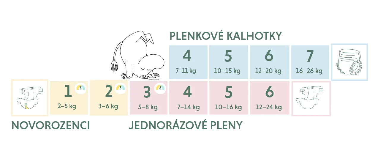 Plenky Muumi Baby jsou k dispozici v celé řadě velikostí, od novorozence po batole. Všechny naše pleny jsou vyráběny z čistých a bezpečných surovin způsobem šetrným k životnímu prostředí v jediné finské továrně na pleny.